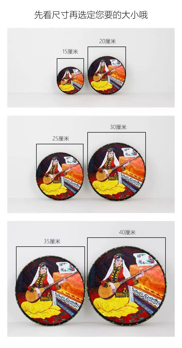 新疆手鼓民族乐器牛皮彩绘舞蹈演出道具餐厅客厅墙面装饰品工艺品